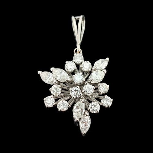• 18ct White Gold Brilliant and Marquise Cut Diamond Starburst Pendant, 2.00ct