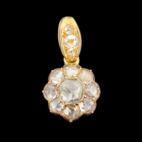 • Antique 18ct Yellow Gold Rose Cut Diamond Cluster Pendant, 0.88ct