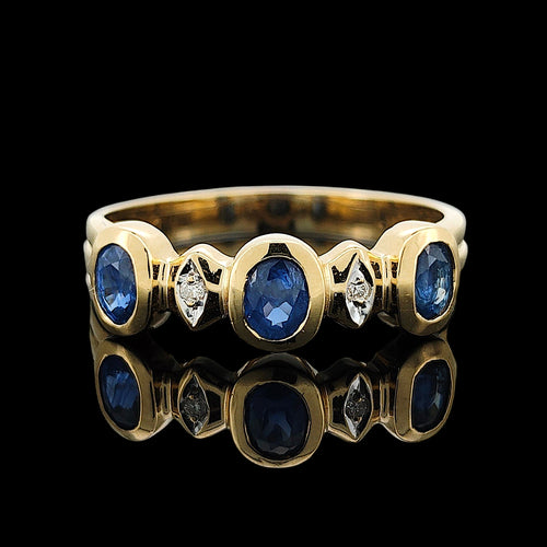 18ct Yellow Gold Sapphire and Diamond Five Stone Bezel Set Ring