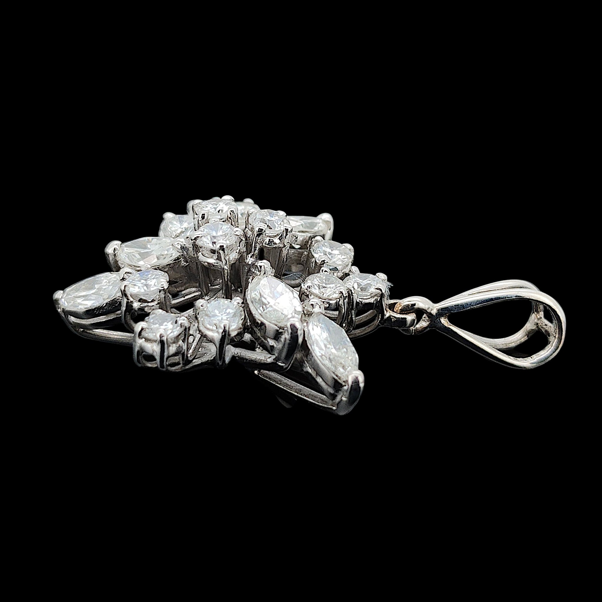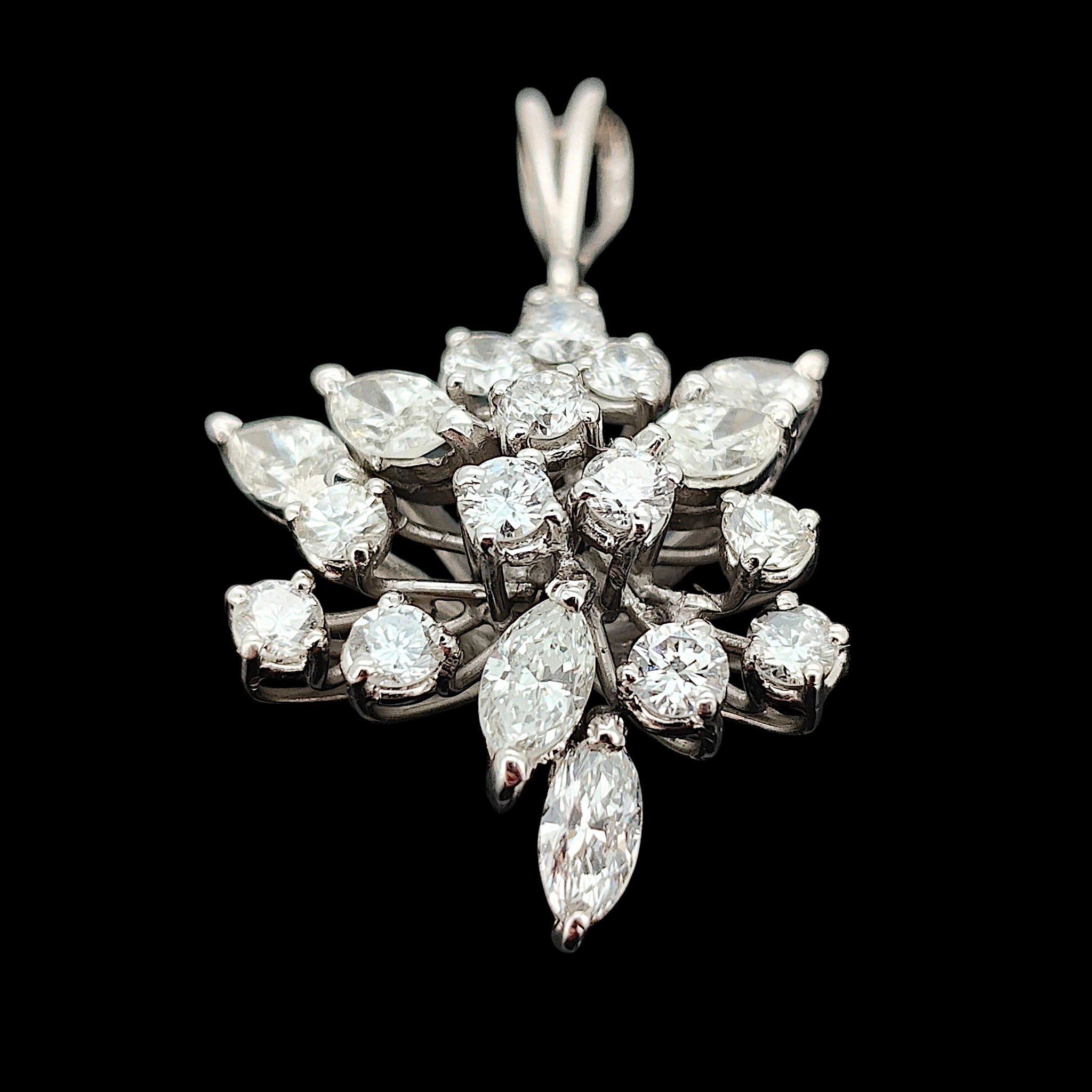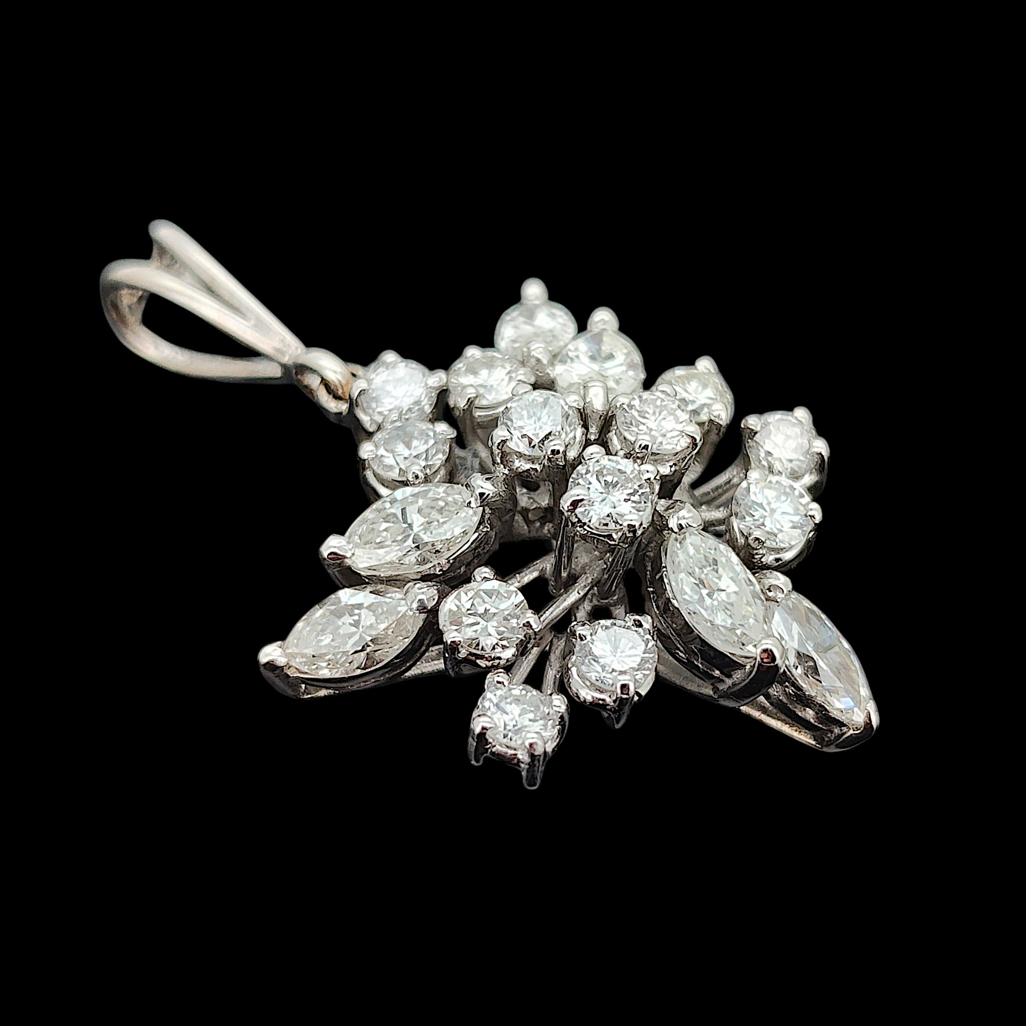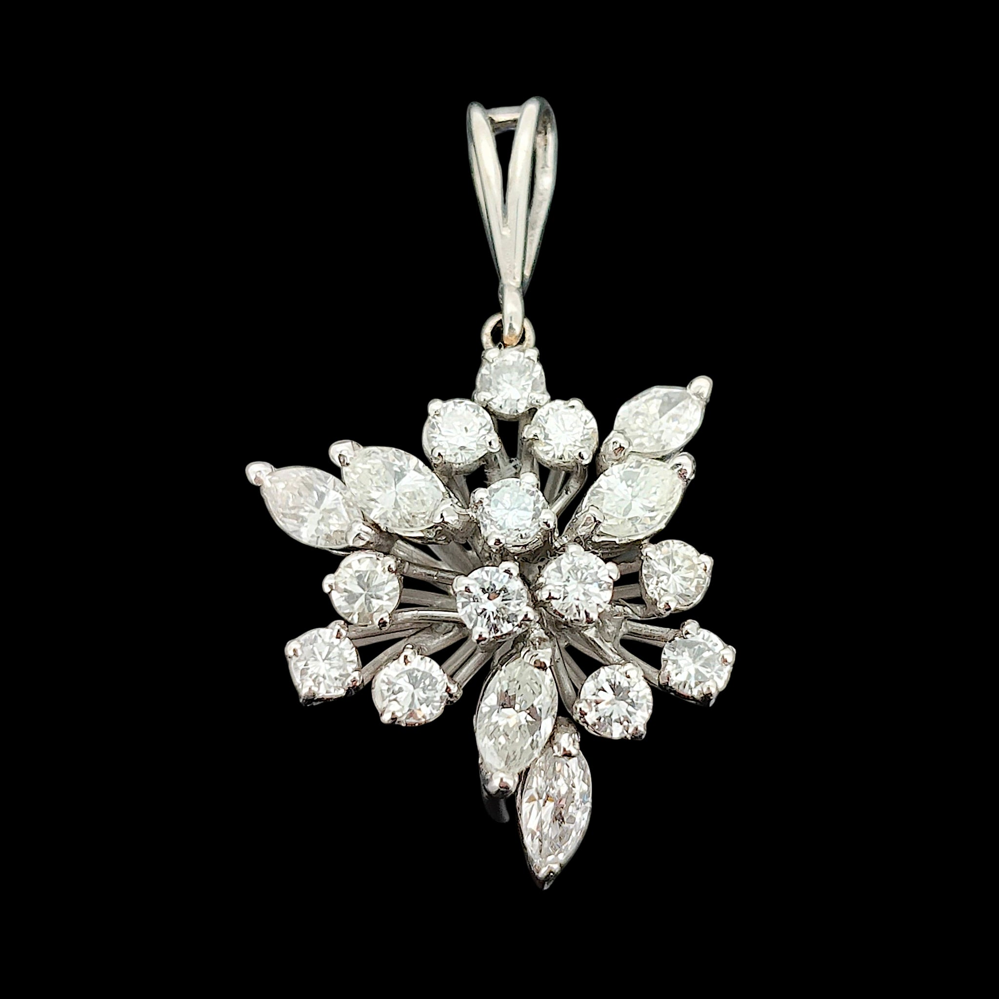 An impressive vintage pendant comprised of round, brilliant cut and marquise cut diamonds, weighing an estimated total of 2.00 carats, claw set in a starburst cluster, all mounted in 18ct white gold.