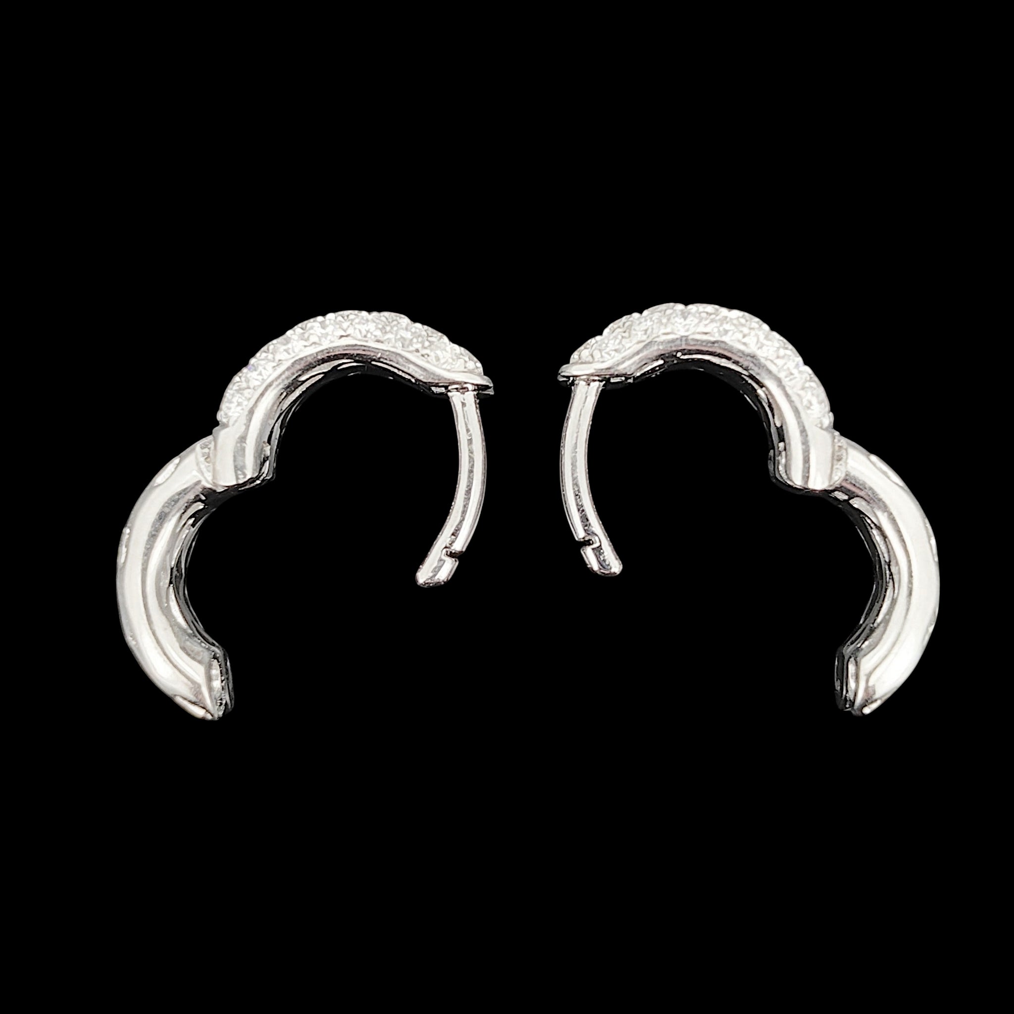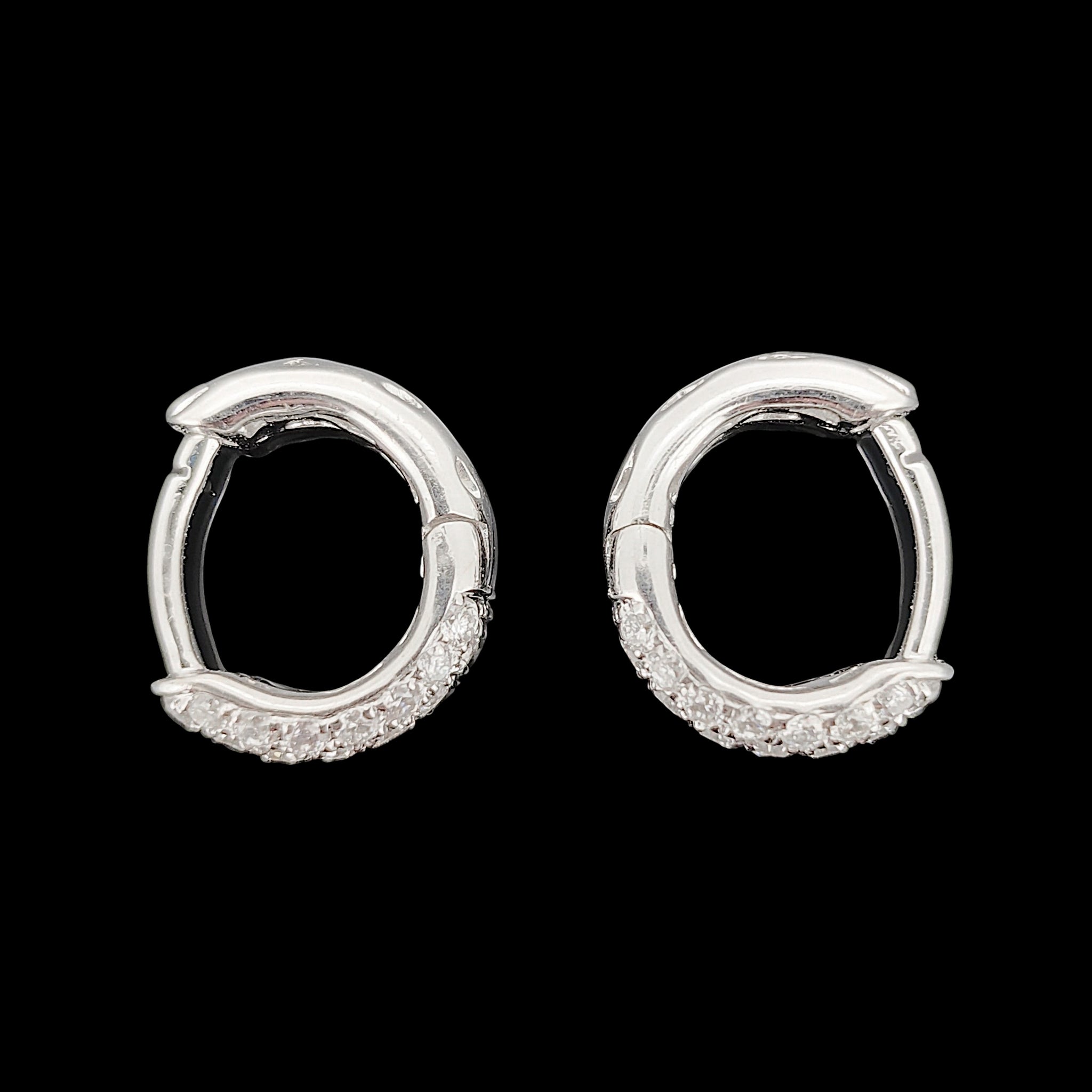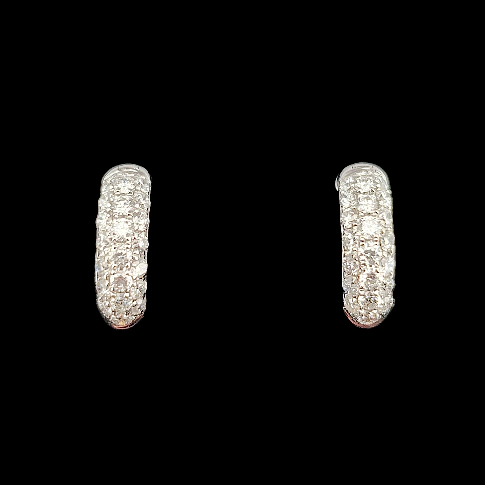 A beautiful pair of contemporary huggie hoop earrings featuring round brilliant cut diamonds, weighing a stated total of 0.40 carats, all mounted in 18ct white gold, hinged and with simple push-in posts.