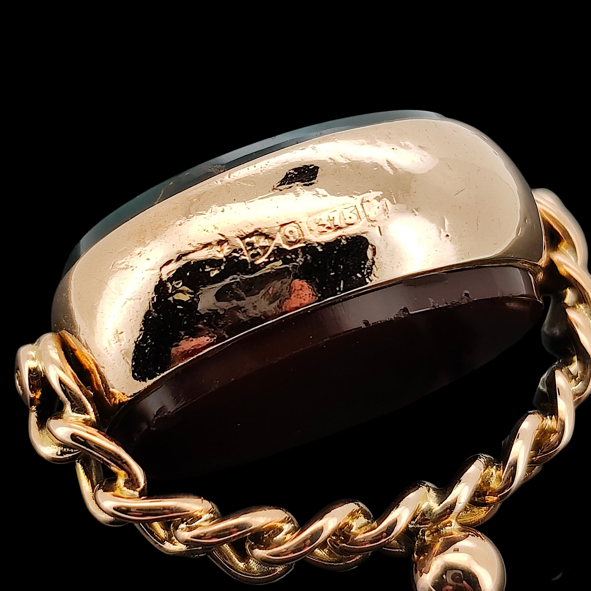 Antique 9ct Yellow Gold Bloodstone and Carnelian Swivel Fob Seal
