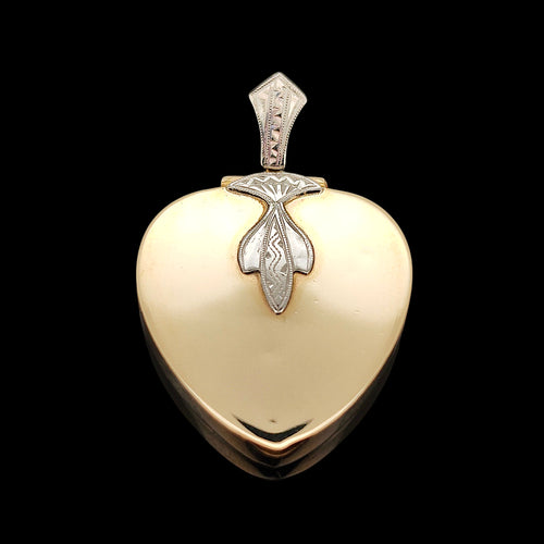 Vintage 9ct Yellow Gold and Palladium Heart Shaped Locket