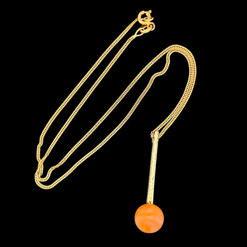 Vintage 14K Yellow Gold Coral Bar Pendant Chain Necklace