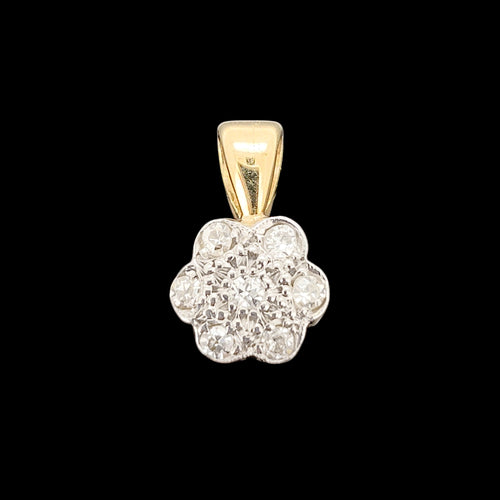Vintage 18ct Yellow and White Gold Diamond Flower Cluster Pendant