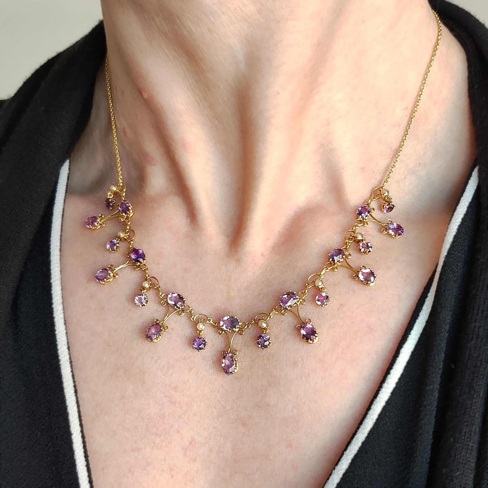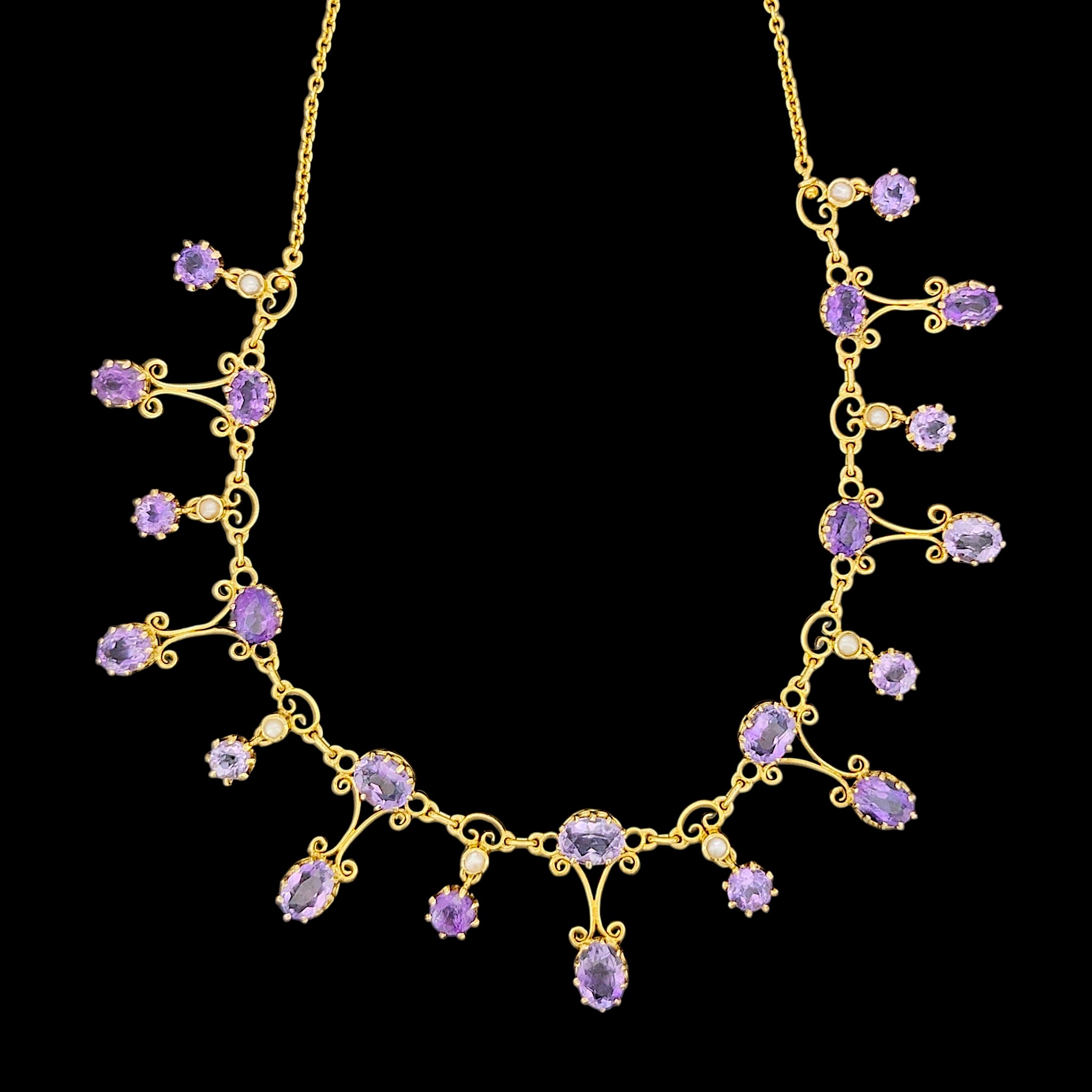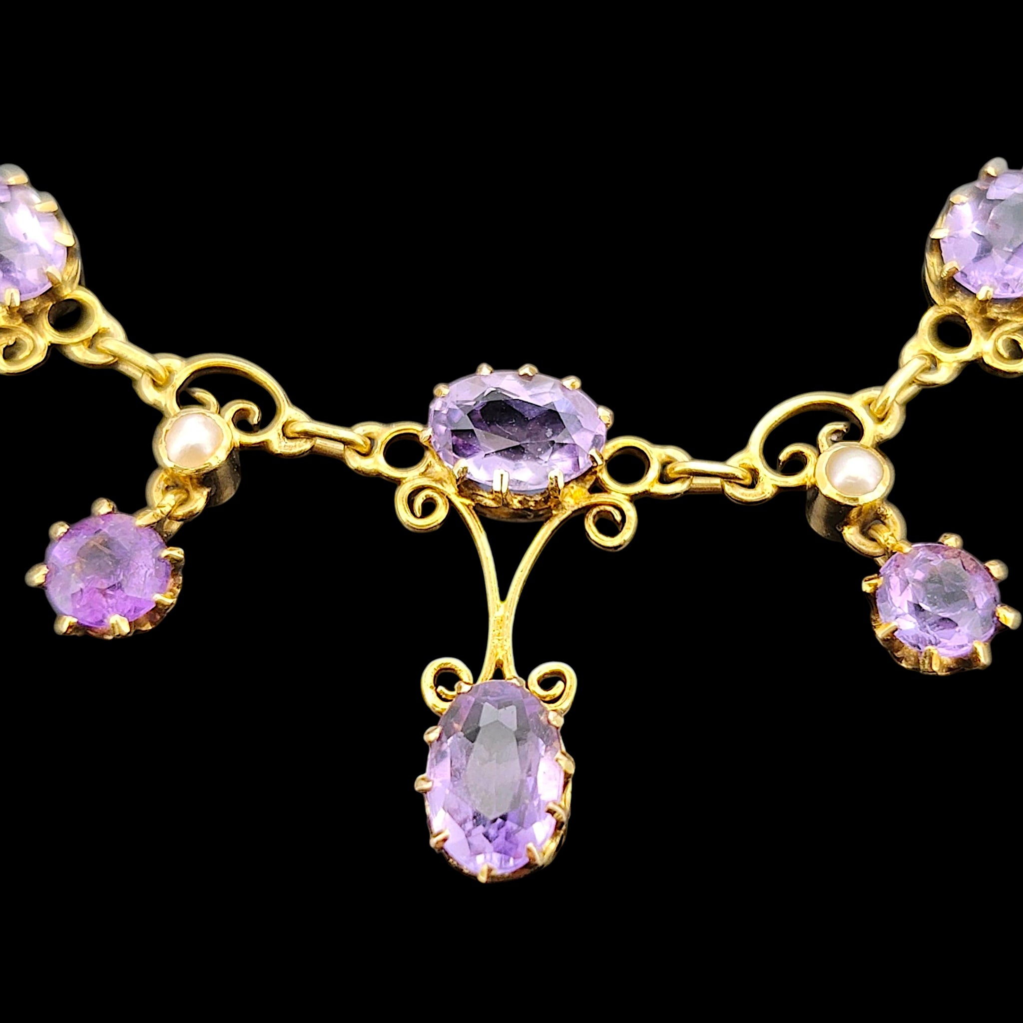 Antique 15ct Yellow Gold Amethyst and Pearl Fringe Necklace