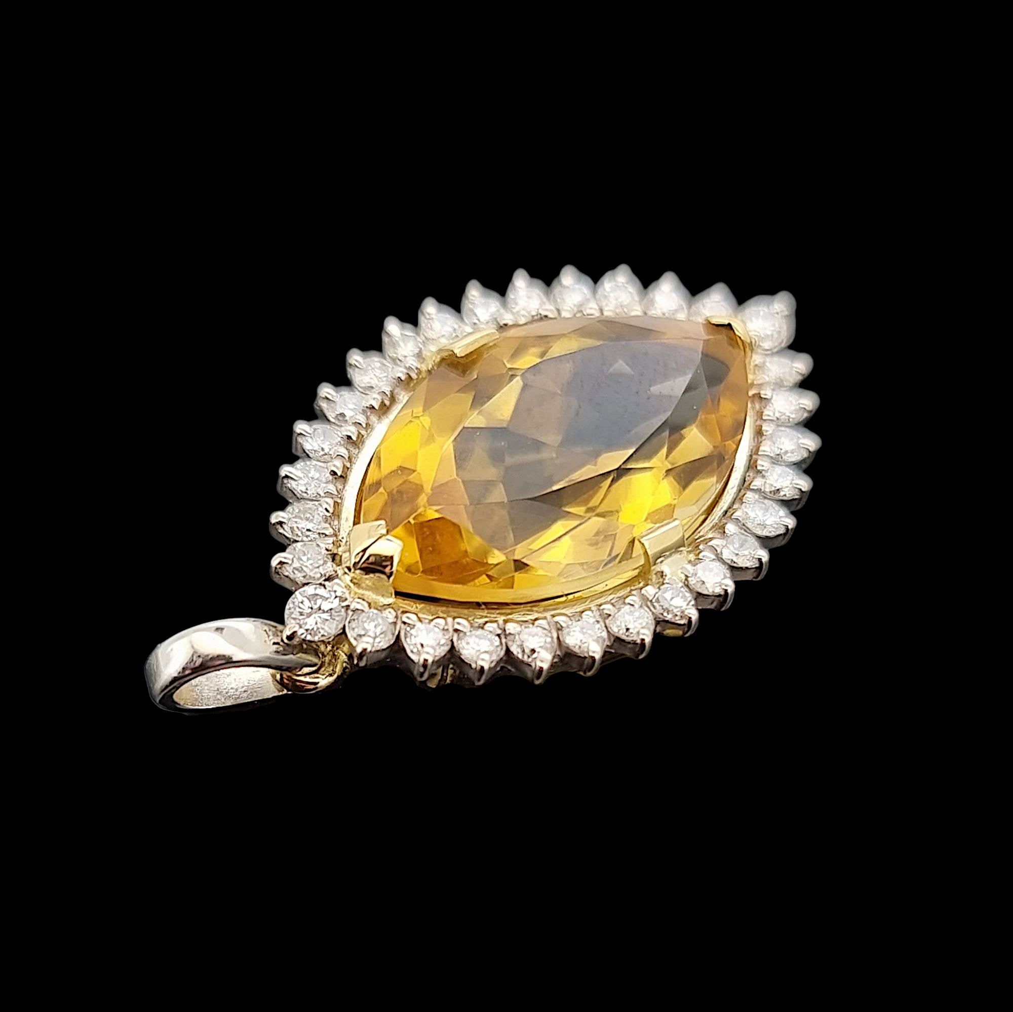 A fabulous vintage cluster pendant comprising a marquise shaped citrine, surrounded by a brilliant cut diamond border, weighing an estimated total of 0.80 carats, claw set in 18ct yellow and white gold.