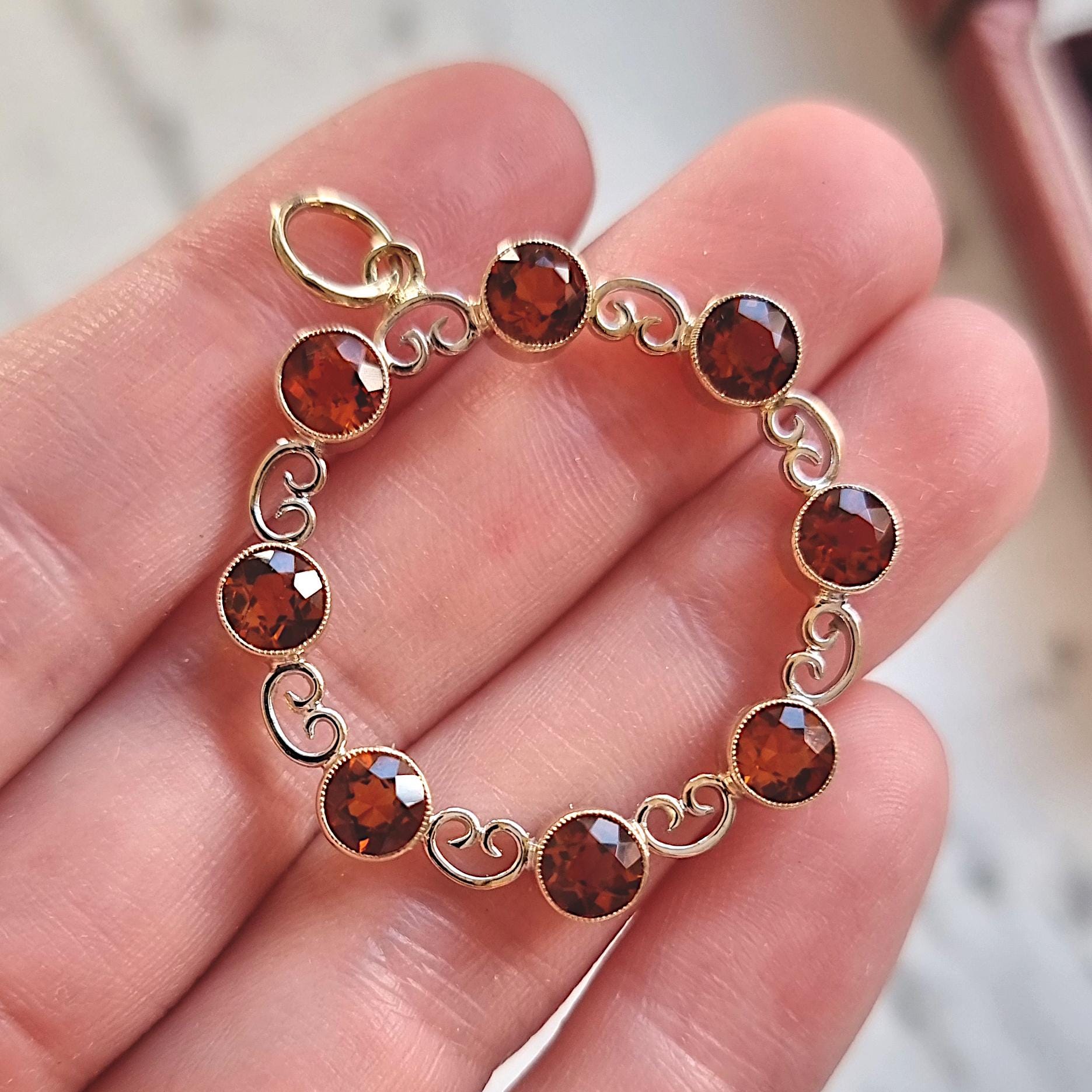 An impressive open circle pendant set with eight round citrines which are bezel set, with curled motifs separating them, all mounted in 9ct yellow and white gold, with a 9ct yellow gold halter.