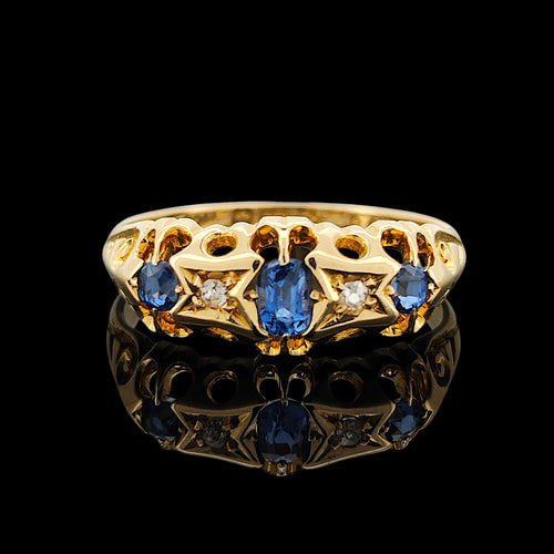 Antique 18ct Yellow Gold Sapphire and Diamond Five Stone Ring